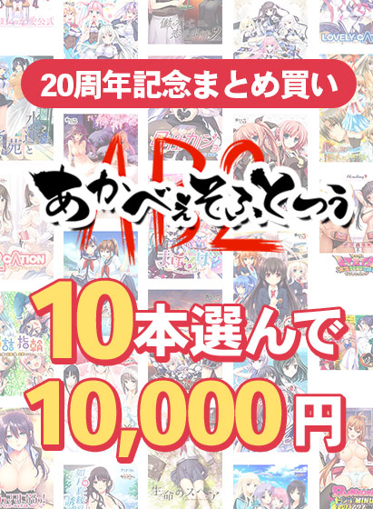 FANZA GAMESで販売中の【まとめ買い】あかべぇそふとつぅ20周年記念!10本10,000円まとめ買い詳細。アダルトPCゲームでは、新作人気作や懐かしの名作エロゲなど格安ダウンロード販売!ここでしか買えない独占販売タイトルも要チェック!